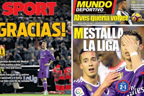 皇馬在與瓦倫西亞的比賽中失利,銀河戰(zhàn)艦在少賽一場的情況下只領(lǐng)先巴薩一分,這讓紅藍(lán)軍團(tuán)看到了奪冠希望。加泰羅尼亞媒體則是一片歡騰,表示巴薩應(yīng)該抓住機(jī)會(huì),趁機(jī)反超皇馬。