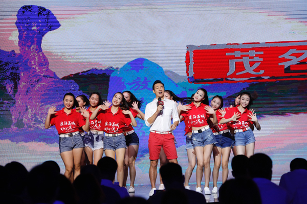 值得一提的是,廣東省茂名市市委副書記、市長許志暉,湖北省十堰市市委常委、常務(wù)副市長周鋒來到說明會,以親身體驗推介節(jié)目。因節(jié)目結(jié)緣的廣東省茂名市和湖北省十堰市,雖然場上“打”得“你死我活”,場下卻密切互動,甚至約定了去對方城市參觀一番。借此機會,十堰市市委常委、常務(wù)副市長周鋒帶領(lǐng)“市民”,乘坐“火車”抵達“茂名”,在茂名市市委副書記、市長許志暉的帶領(lǐng)下,品茗賞景,還觀看《矛嘚道》表演。最后兩位領(lǐng)導(dǎo)一起登臺,與舞蹈演員完成了《海誓山盟》表演,在山水中實現(xiàn)了兩個城市的深入文化交流。