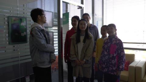 (王曉龍帶領(lǐng)小名士參觀小冰房間)