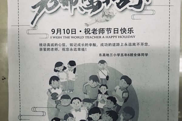 在第34個教師節(jié)到來之際,東高地三小的小航寶們在學(xué)校大隊(duì)的號召下,紛紛行動起來,開展了形式多樣的“深情厚意敬老師”活動。
