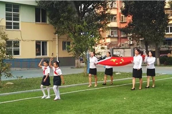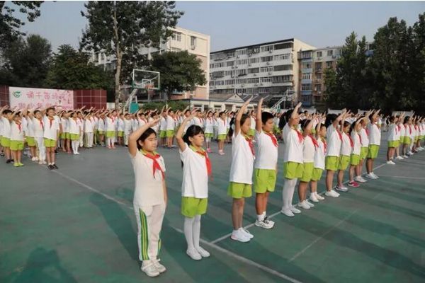 清晨,伴隨著校園里的第一縷陽光,全校師生在操場上匯聚。黨員教師代表和少先隊員們共同升起了五星紅旗。