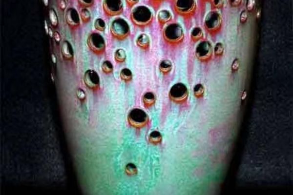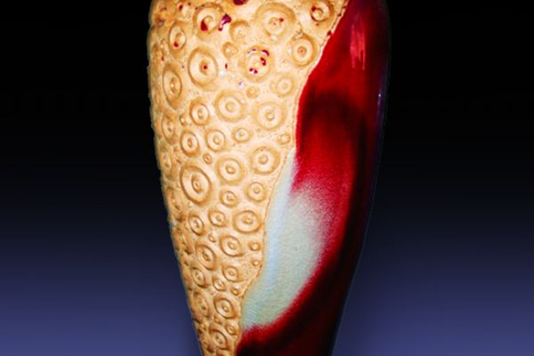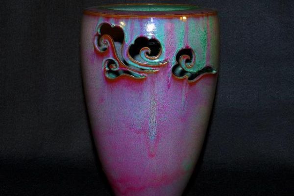 作品《腐》——選擇了比較現(xiàn)代的造型,這是劉志鈞初步接觸鈞瓷時(shí)內(nèi)心觀感的寫照。那時(shí)候還在鄭州大學(xué)新聞系教學(xué)的他,應(yīng)中國工藝美術(shù)大師劉富安的邀請,成立了工作室?赡苁窃趯W(xué)院里沉浸已久的緣故,他對當(dāng)時(shí)神垕的鈞瓷產(chǎn)品滿是不屑,認(rèn)為它們太傳統(tǒng)、太守舊,甚至認(rèn)為它們舊得已經(jīng)腐朽了。由此,他產(chǎn)生了這樣的想法,以直觀的表現(xiàn)形式,載于傳統(tǒng)造型之上,隱喻其糟粕于身,于是就有了《腐》。 “腐”開啟了劉志鈞鈞瓷的創(chuàng)作之旅,同時(shí)也喚醒了他一系列與云有關(guān)的藝術(shù)情懷。