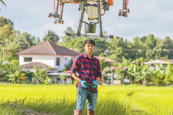 近年來(lái),中國(guó)制造的農(nóng)業(yè)植保無(wú)人機(jī)助力泰國(guó)農(nóng)業(yè)生產(chǎn)更加高效安全。圖為一名泰國(guó)農(nóng)民操作大疆農(nóng)業(yè)植保無(wú)人機(jī)。