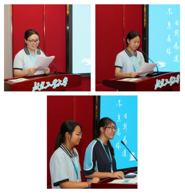 夏令營(yíng)接近尾聲時(shí),一場(chǎng)隆重而溫馨的閉營(yíng)儀式為活動(dòng)畫(huà)上了圓滿句號(hào)。我校的張雅淇、尹靖彤以及李樂(lè)萱、金岑四位同學(xué)代表分組發(fā)言,她們懷著真摯的感恩之情,回顧了夏令營(yíng)期間的豐富經(jīng)歷和點(diǎn)滴收獲,表達(dá)了對(duì)活動(dòng)組織方、辛勤付出的老師們以及熱情交流的學(xué)長(zhǎng)學(xué)姐們的衷心感謝,并堅(jiān)定地喊出了同學(xué)們科技報(bào)國(guó)的遠(yuǎn)大志向和不懈追求,贏得了在場(chǎng)師生的熱烈掌聲。