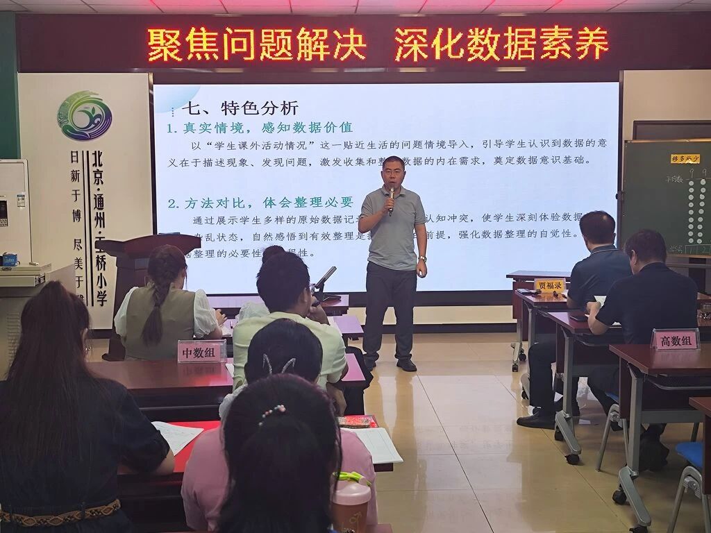最后,彭主任做活動(dòng)總結(jié),對(duì)專(zhuān)家指導(dǎo)表示衷心感謝,并提出學(xué)校數(shù)學(xué)教學(xué)改進(jìn)方向。此次活動(dòng)為玉橋小學(xué)數(shù)學(xué)學(xué)科發(fā)展提供了清晰的行動(dòng)指南,學(xué)校將以“數(shù)據(jù)意識(shí)主題教學(xué)”為突破口,深化單元整體教學(xué)設(shè)計(jì)研究,建立“問(wèn)題導(dǎo)向—素養(yǎng)導(dǎo)向—實(shí)踐導(dǎo)向”的課堂教學(xué)新樣態(tài)。同時(shí),學(xué)校將繼續(xù)利用“大教研”形式,開(kāi)展數(shù)據(jù)主題教學(xué)的持續(xù)研究與實(shí)踐,推動(dòng)教師專(zhuān)業(yè)能力與學(xué)生核心素養(yǎng)的協(xié)同發(fā)展。