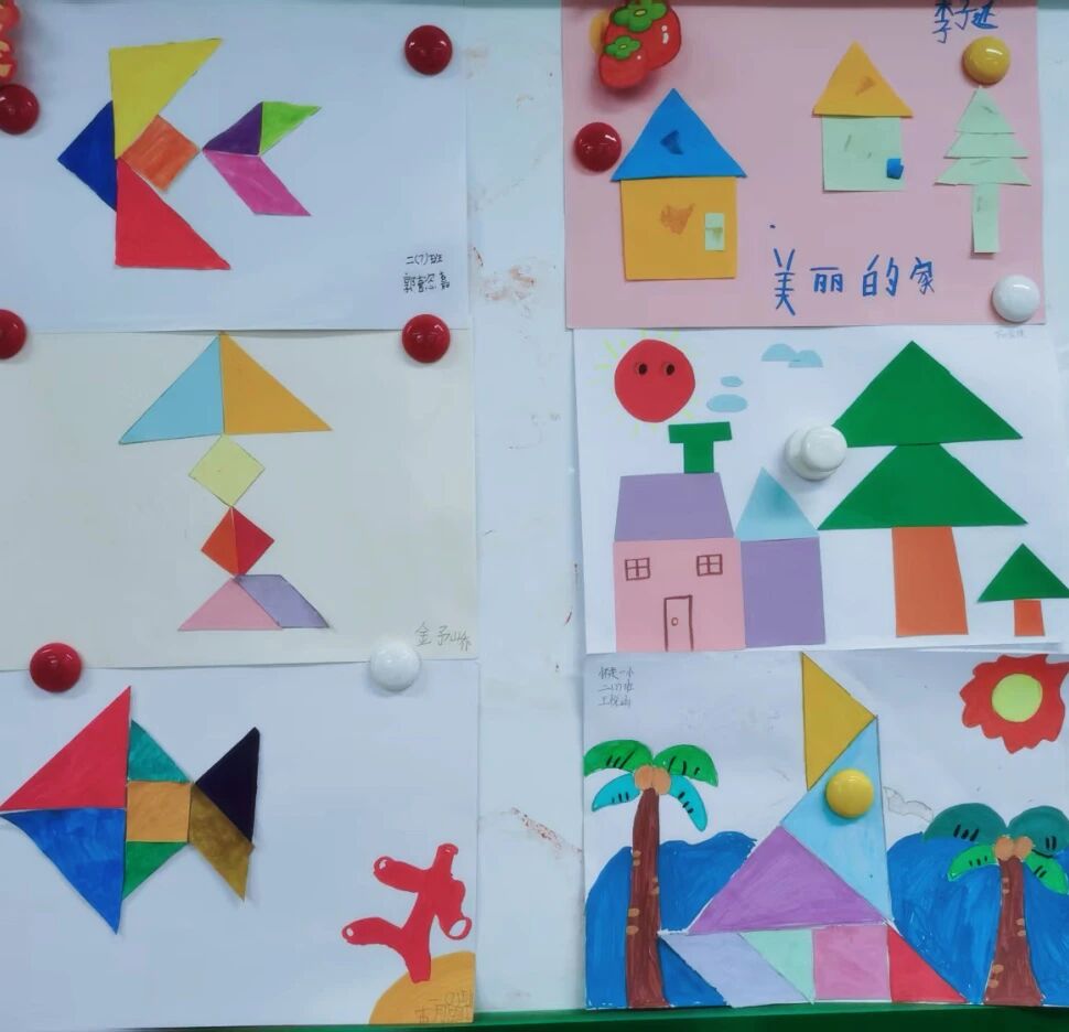 當數(shù)學(xué)知識走出課本,便煥發(fā)出無窮的生活魅力。孩子們用數(shù)學(xué)點亮創(chuàng)意,用實踐探索真知。從一年級的七巧板拼貼到五年級的立體建筑模型,各年級同學(xué)結(jié)合所學(xué)知識,動手創(chuàng)作出了豐富多彩的數(shù)學(xué)實踐作品。他們設(shè)計作息表、會徽、統(tǒng)計圖,甚至用鐵絲圍圖形、用紙盒建模型——在玩中學(xué),在做中思,不僅鞏固了知識,更鍛煉了空間想象、數(shù)據(jù)分析、邏輯推理和問題解決能力。每一份作品都是數(shù)學(xué)核心素養(yǎng)的生動體現(xiàn),讓我們看到數(shù)學(xué)之美,就在手中、在身邊、在生活里!