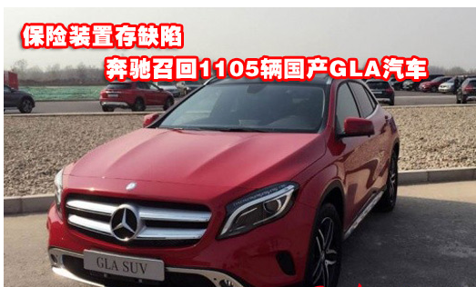 由于保險裝置存缺陷,奔馳將召回1105輛國產(chǎn)GLA汽車。
