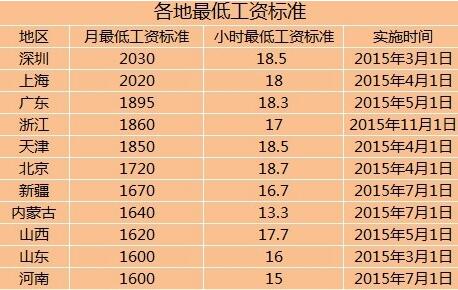日前,全國工資最低標準排行榜火熱出爐。深圳以月薪2030元奪得榜首,山東、河南、貴州三省最低工資標準均為1600元,并列第十位。